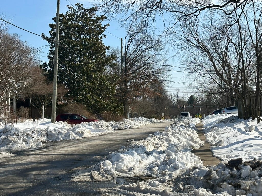 It’s not good to spend this much time inside. Said it before: The big freeze of 2026 was conveniently timed for my family, which was always going to be at home, shepherding our baby from the Crying Every Couple Of Hours stage to a new stage — sometimes hard to imagine — when she will not cry every couple of hours. Beautiful world out there, but hard to roll over in a stroller. Some of the snow will melt this week, hopefully enough to reveal the flat, man-made surface under all this dangerous weather.